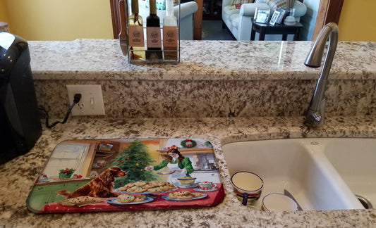 Irish Water Spaniel Christmas Cookies Dish Drying Mat