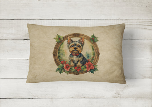 Yorkie Christmas Flowers Throw Pillow