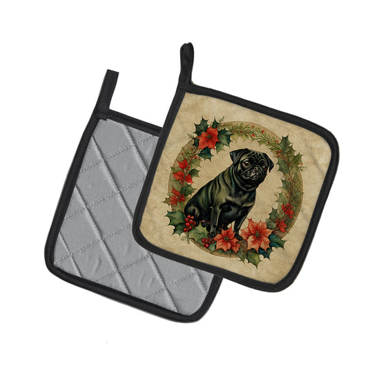 Rottweiler Christmas Flowers Pair of Pot Holders