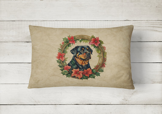Rottweiler Christmas Flowers Throw Pillow