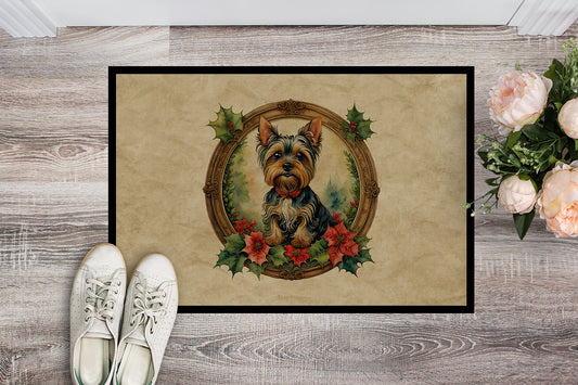 Yorkie Christmas Flowers Doormat