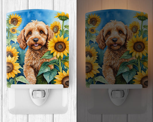 Cockapoo in Sunflowers Ceramic Night Light
