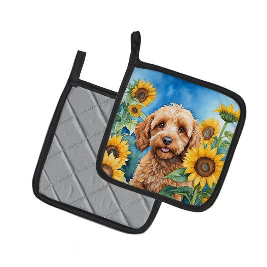 Cockapoo in Sunflowers Pair of Pot Holders
