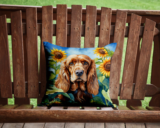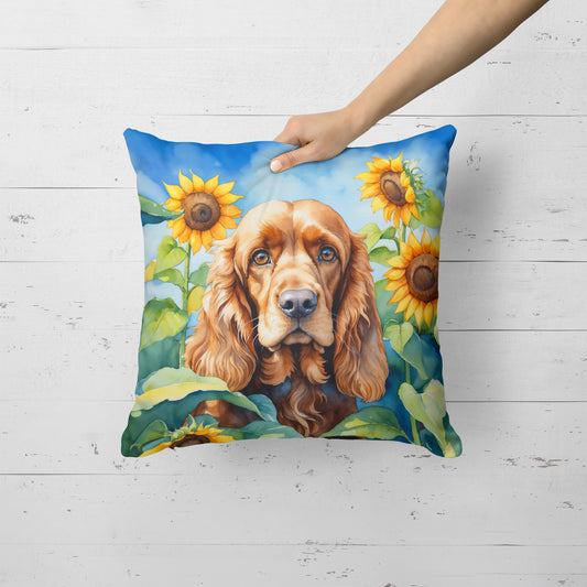 English Cocker Spaniel in Sunflowers Throw Pillow