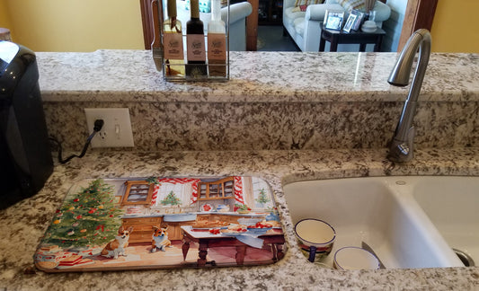 Corgi Fall Kitchen Pumpkins Dish Drying Mat