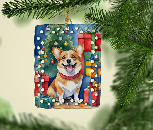 Pembroke Welsh Corgi Tricolor Red-Headed Christmas Ceramic Ornament