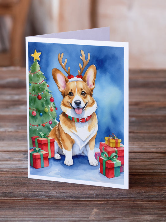 Corgi Christmas Reindeer Greeting Cards Pack of 8