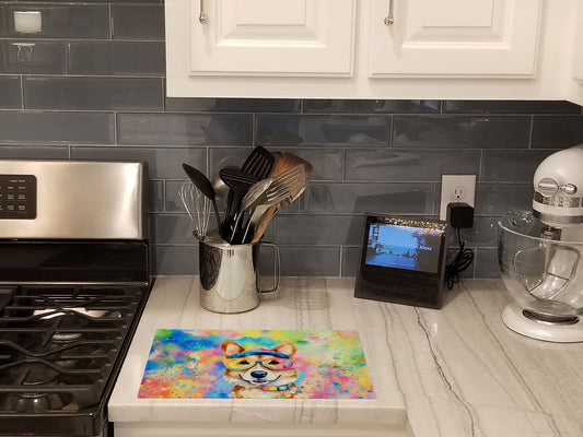 Corgi Hippie Dawg Glass Cutting Board
