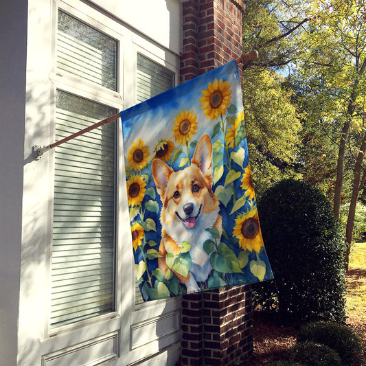 Corgi in Sunflowers House Flag
