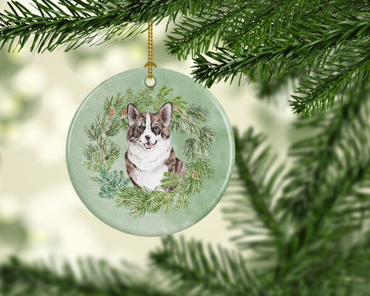 Corgi Brindle Christmas Wreath Ceramic Ornament