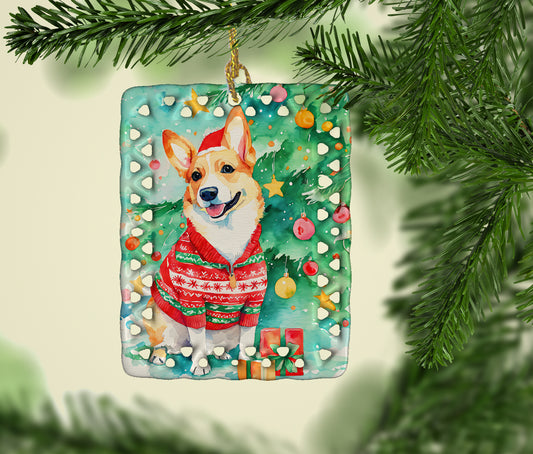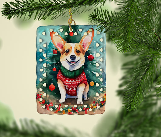 Pembroke Welsh Corgi Sable and White Christmas Ceramic Ornament