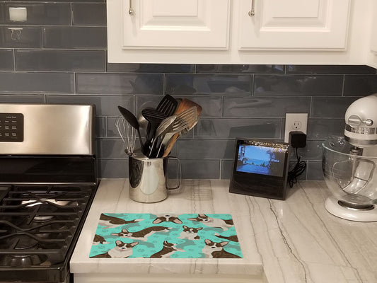 Tricolor Cardigan Corgi Glass Cutting Board Large