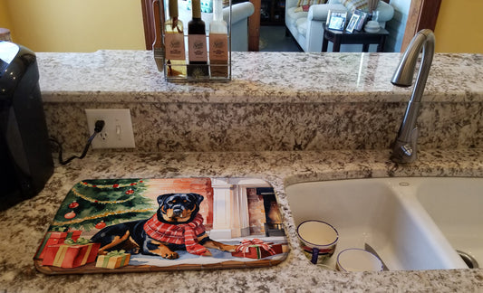 Rhodesian Ridgeback Cozy Christmas Dish Drying Mat