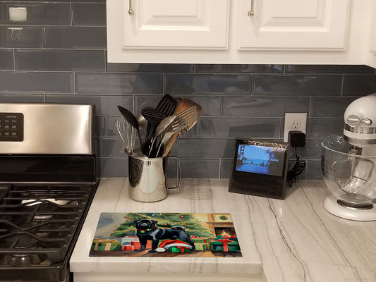 Portuguese Water Dog Cozy Christmas Glass Cutting Board