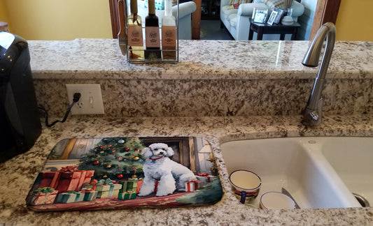 Poodle Cozy Christmas Dish Drying Mat