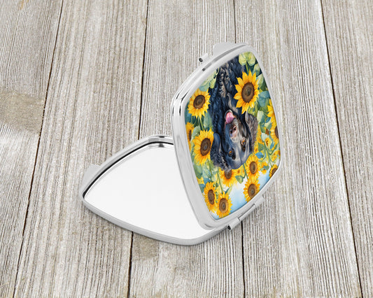 Curly-Coated Retriever in Sunflowers Compact Mirror