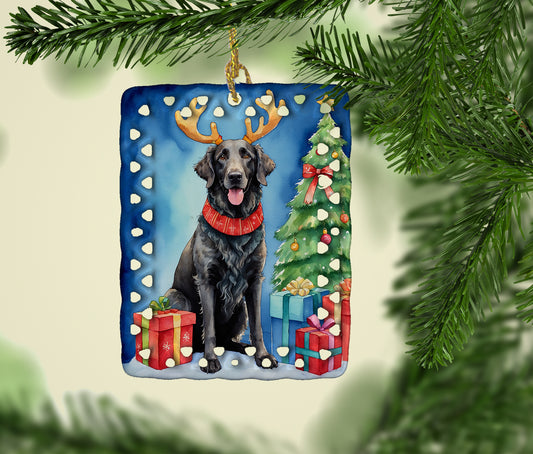 Curly-Coated Retriever Christmas Reindeer Porcelain Ornament