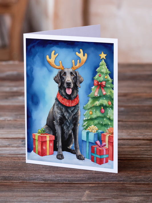 Curly-Coated Retriever Christmas Reindeer Greeting Cards Pack of 8