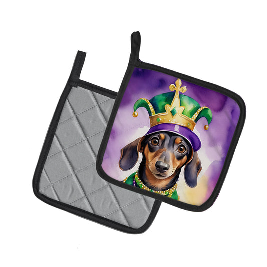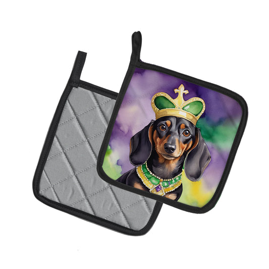Dachshund King of Mardi Gras Pair of Pot Holders