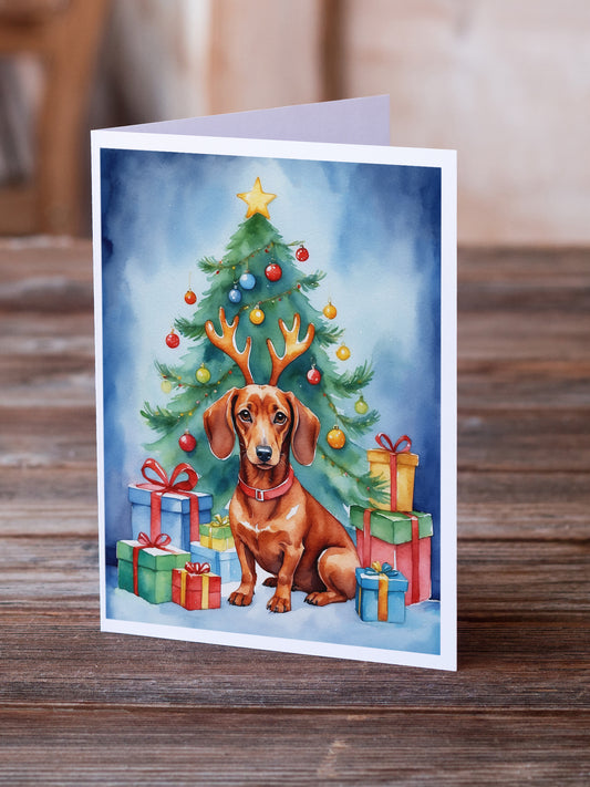 Dachshund Christmas Reindeer Greeting Cards Pack of 8