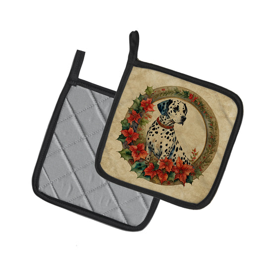 Dalmatian Christmas Flowers Pair of Pot Holders