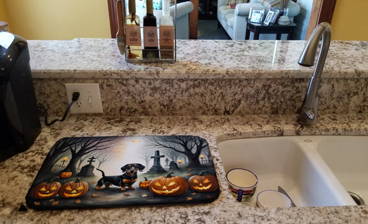 Doberman Pinscher Spooky Halloween Dish Drying Mat