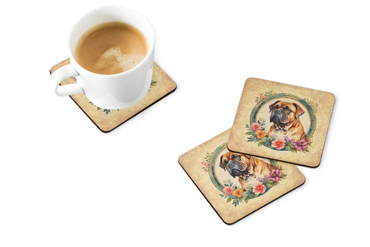 Dogue de Bordeaux and Flowers Foam Coasters