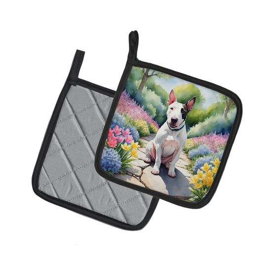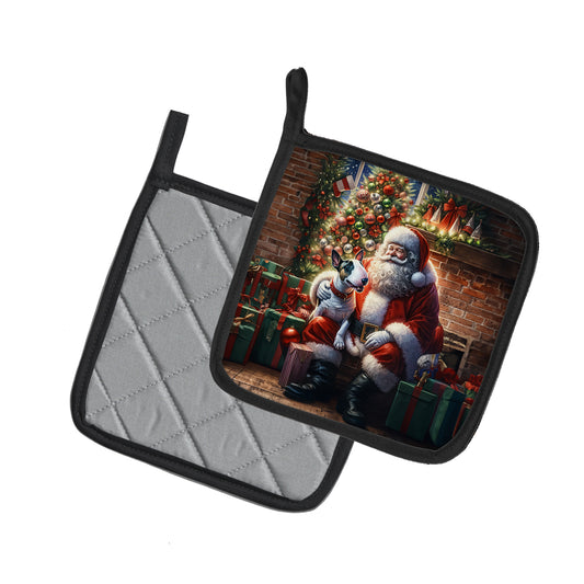 English Bull Terrier and Santa Claus Pair of Pot Holders