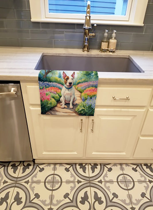 Decorating Easter English Bull Terrier Dish Drying Mat