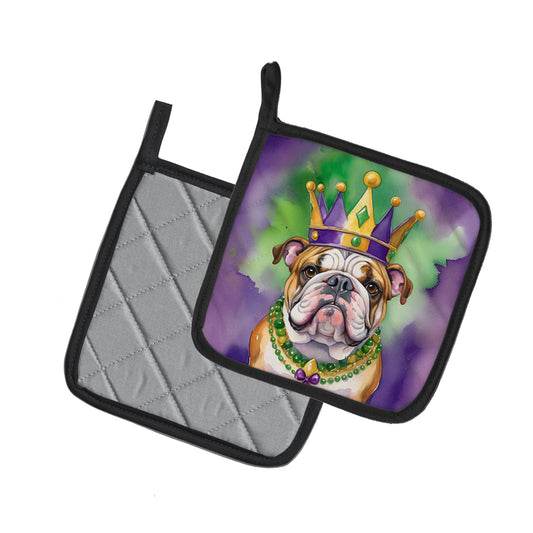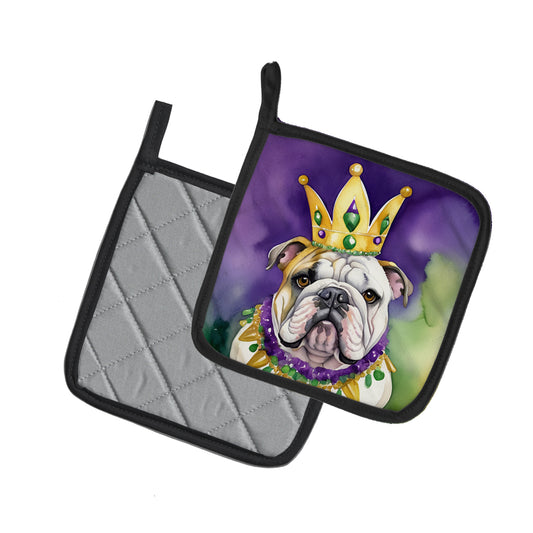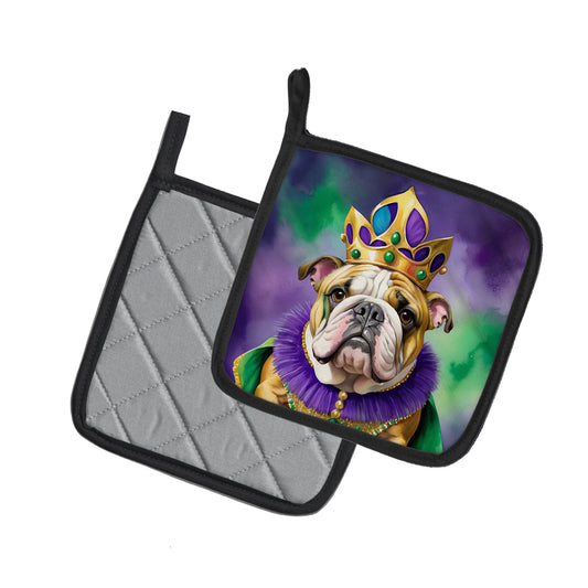 English Bulldog King of Mardi Gras Pair of Pot Holders