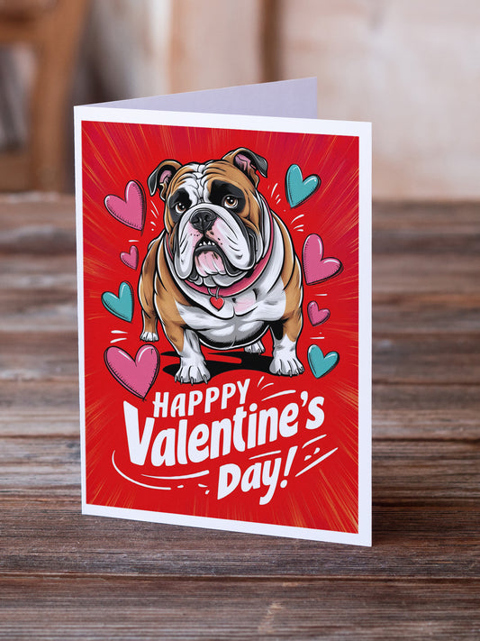English Bulldog Happy Valentine's Day Greeting Cards Pack of 8