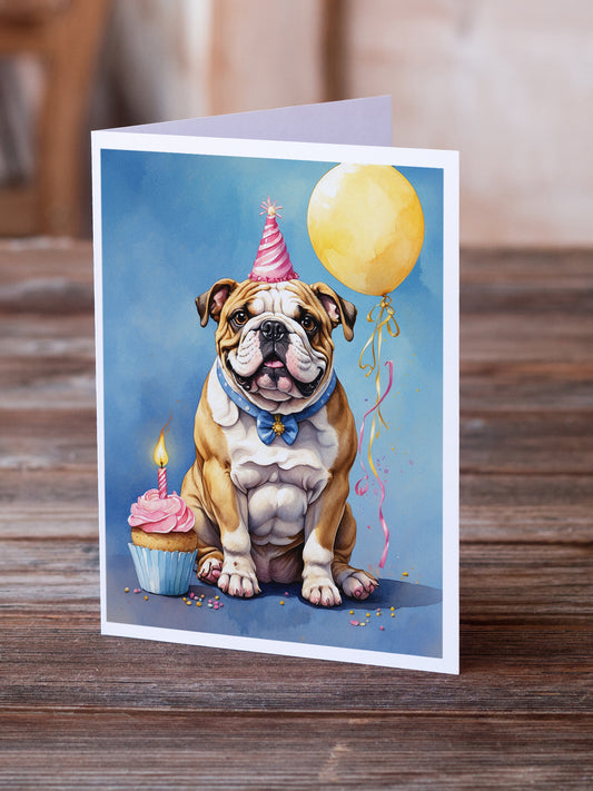 English Bulldog Happy Birthday Greeting Cards Pack of 8