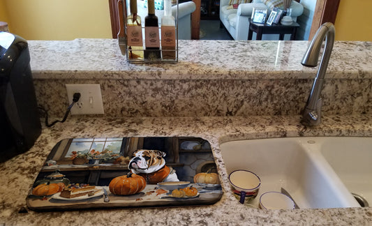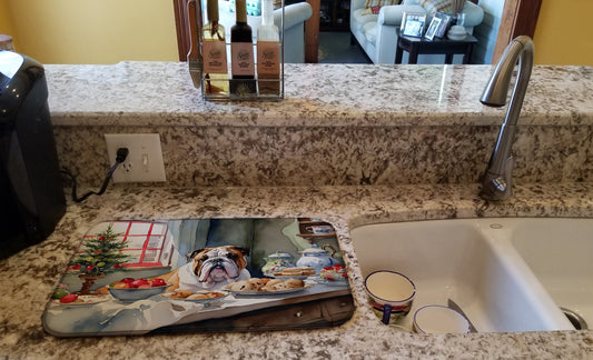 English Bulldog Fall Kitchen Pumpkins Dish Drying Mat