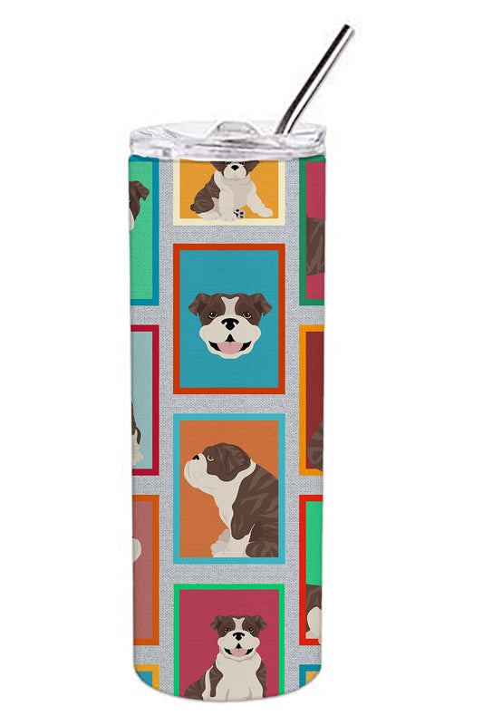 Lots of Brindle English Bulldog Stainless Steel Skinny Tumbler