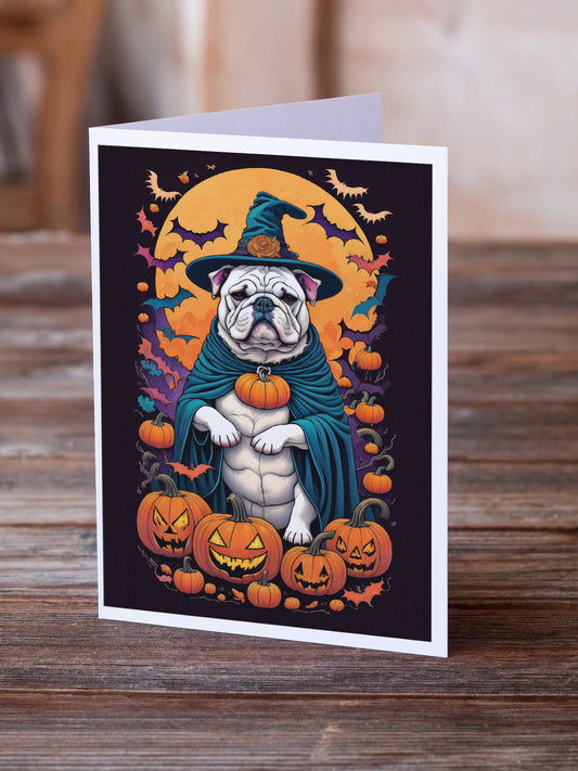 White English Bulldog Witchy Halloween Greeting Cards and Envelopes Pack of 8