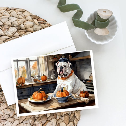 English Bulldog Fall Kitchen Pumpkins Greeting Cards and Envelopes Pack of 8