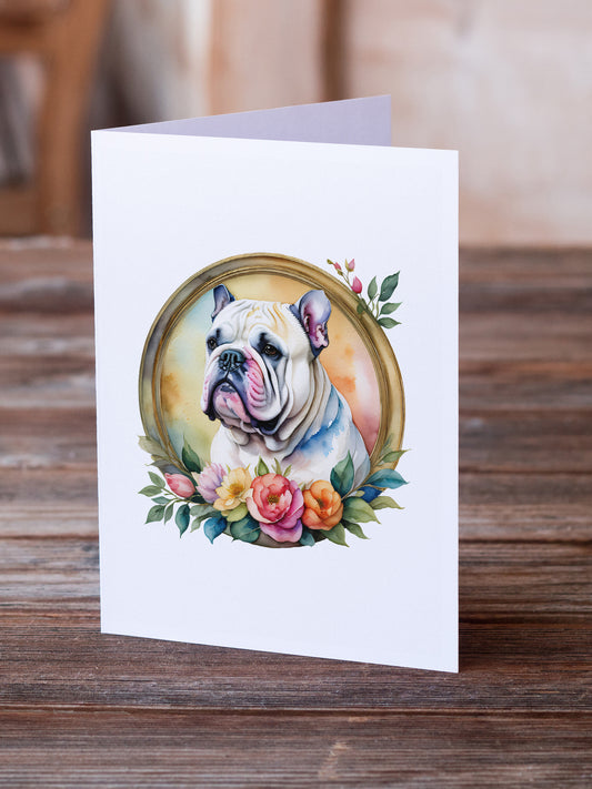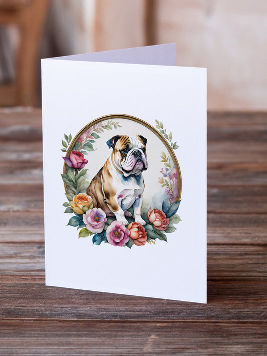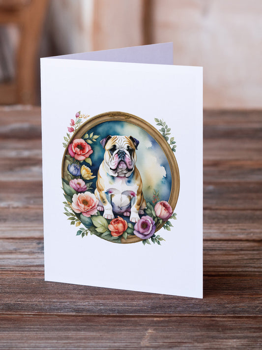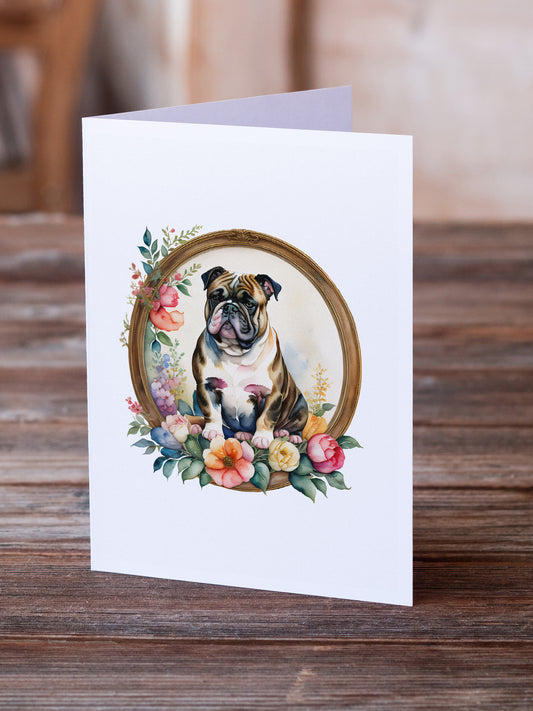 English Bulldog and Flowers Greeting Cards and Envelopes Pack of 8