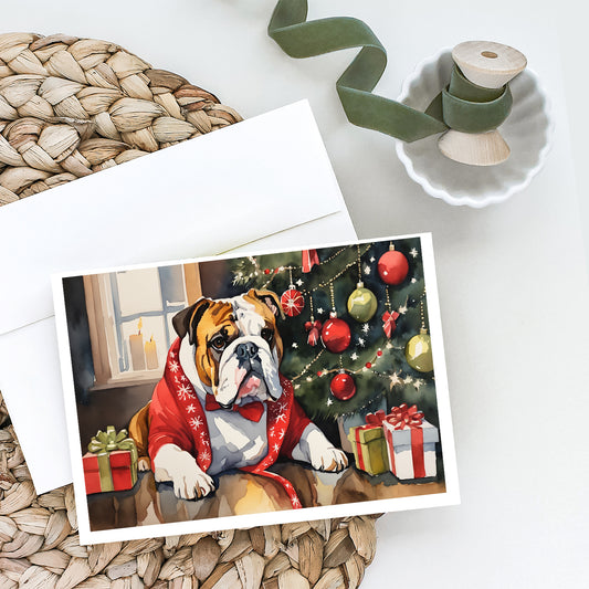 English Bulldog Cozy Christmas Greeting Cards Pack of 8
