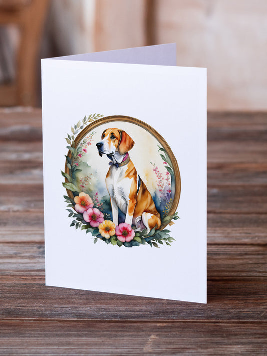 English Foxhound and Flowers Greeting Cards and Envelopes Pack of 8