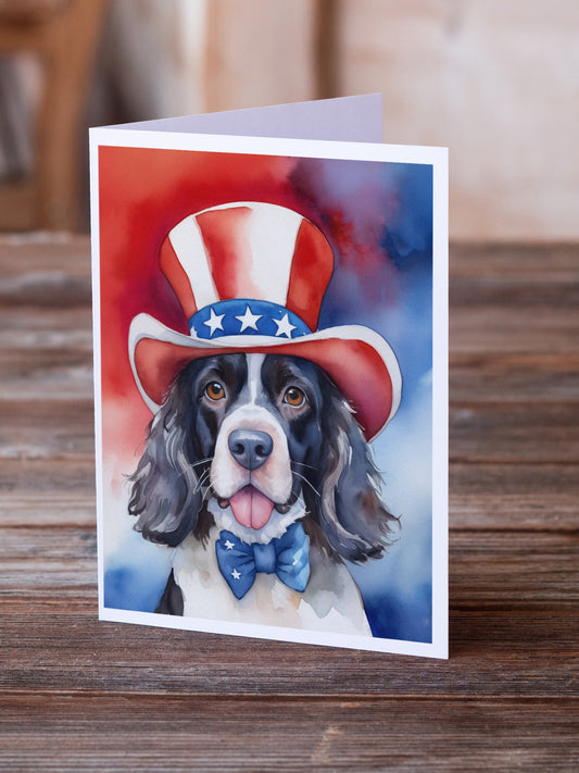 English Springer Spaniel Patriotic American Greeting Cards Pack of 8