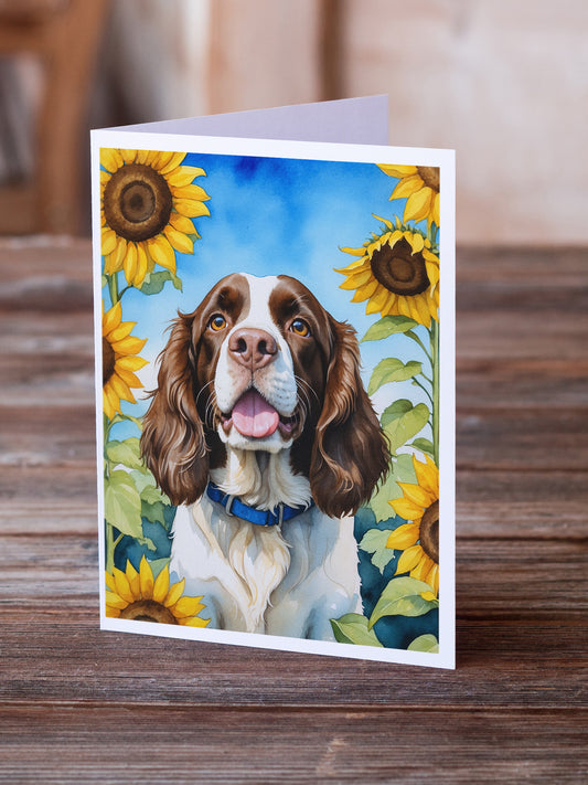 English Springer Spaniel in Sunflowers Greeting Cards Pack of 8