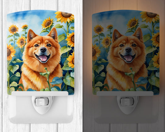 Finnish Spitz in Sunflowers Ceramic Night Light