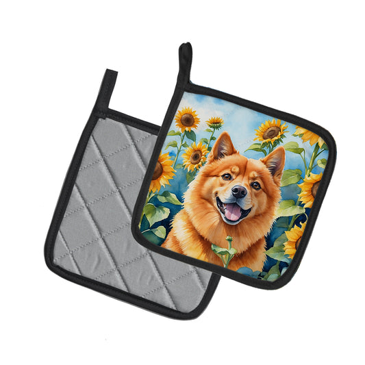 Finnish Spitz in Sunflowers Pair of Pot Holders
