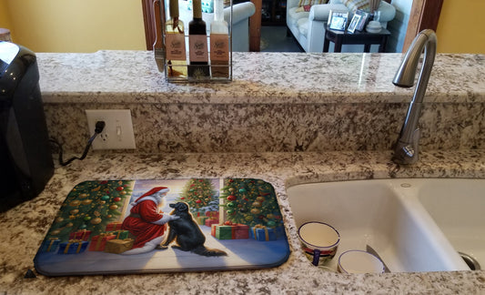 Flat-Coated Retriever and Santa Claus Dish Drying Mat