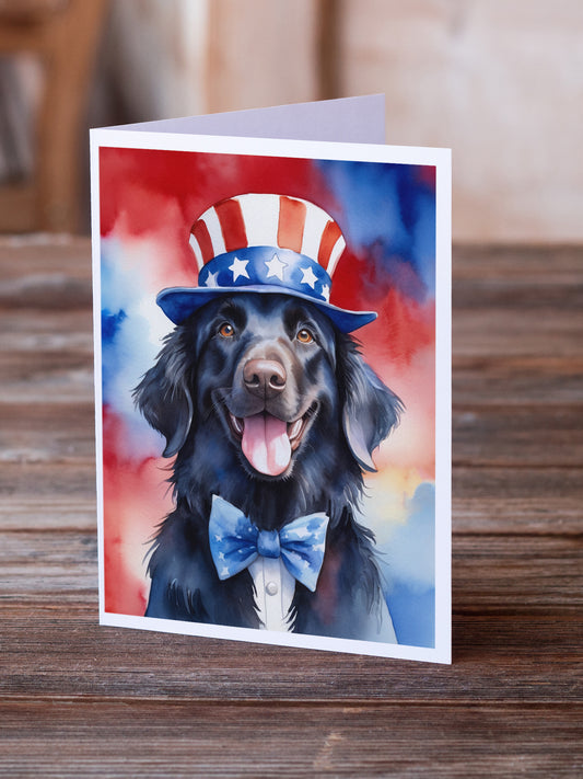 Flat-Coated Retriever Patriotic American Greeting Cards Pack of 8
