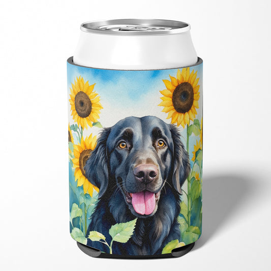 Flat-Coated Retriever in Sunflowers Can or Bottle Hugger