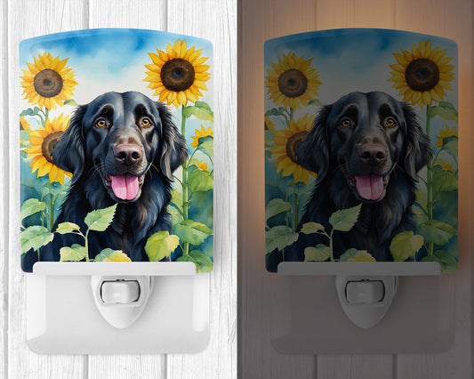 Flat-Coated Retriever in Sunflowers Ceramic Night Light