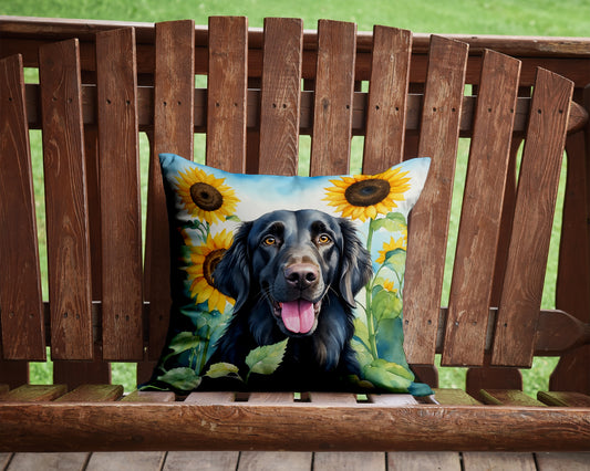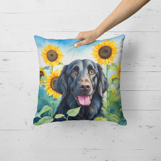 Flat-Coated Retriever in Sunflowers Throw Pillow