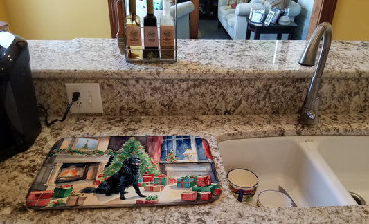 Flat-Coated Retriever Cozy Christmas Dish Drying Mat