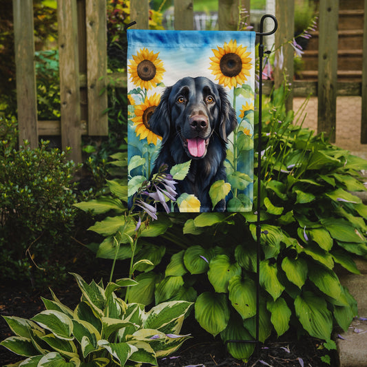 Flat-Coated Retriever in Sunflowers Garden Flag